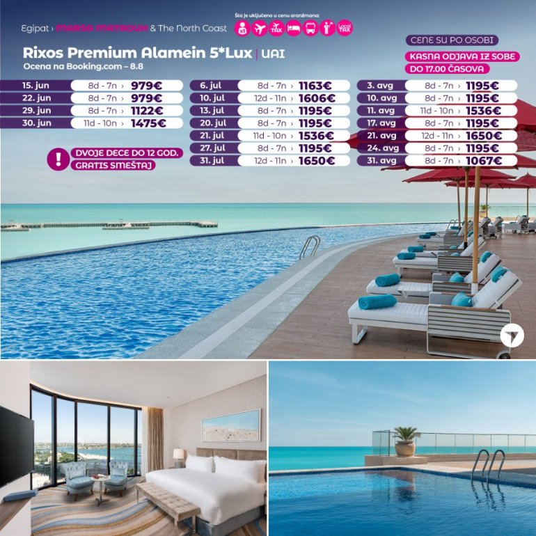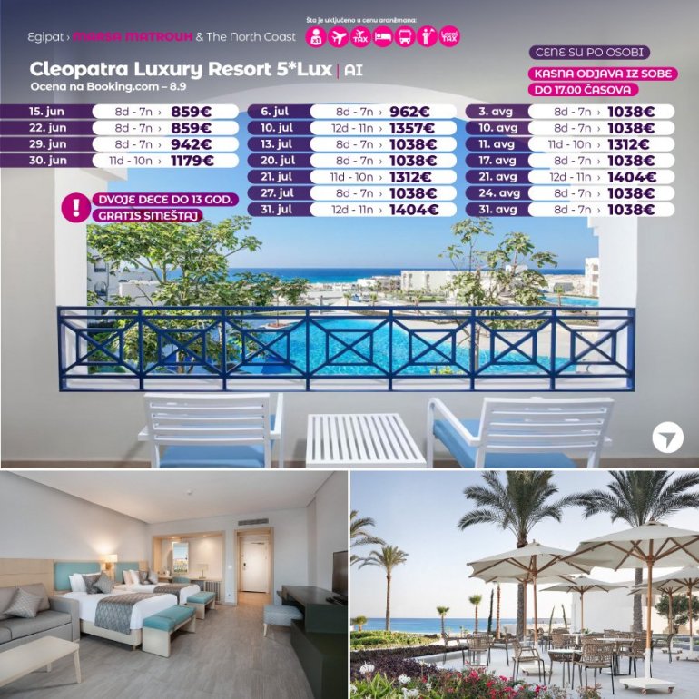Издвајамо из понуде са наше нове дестинације Marsa Matrouh! Одмах поред познатог Almaza Baya! Двоје деце до 13 година ГРАТИС СМЕШТАЈ!