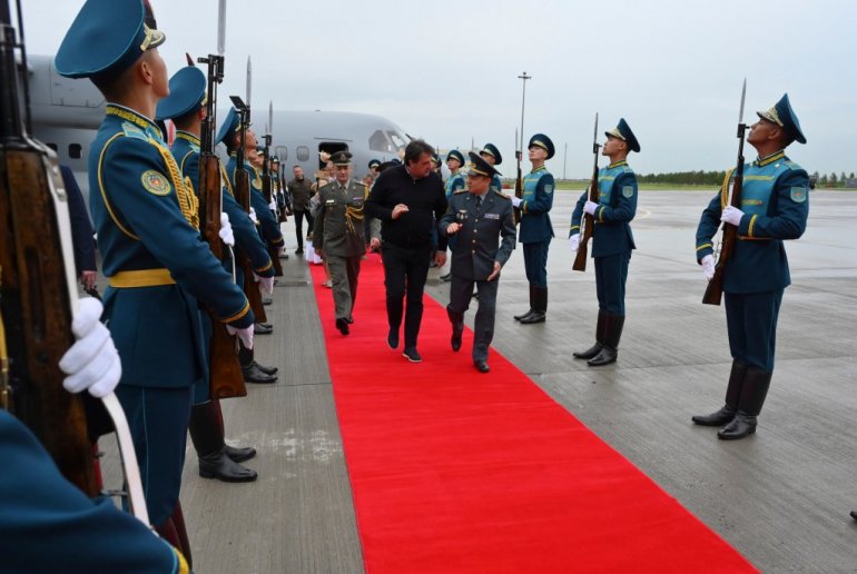 Министра Гашића на Међународном аеродрому „Нурсултан Назарбајев“ дочекао је заменик министра одбране генерал-мајор Шајх-Хасан Сатаркулули Жазикбајев.