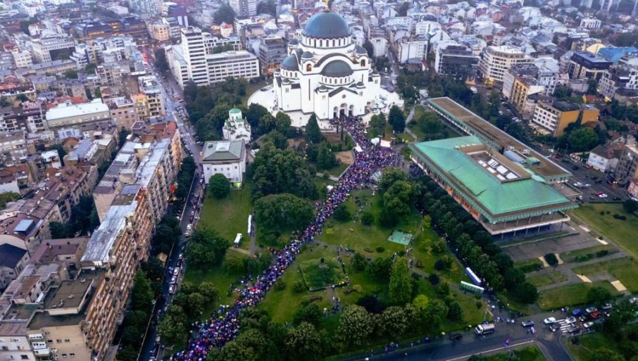 ОДРЖАНА СПАСОВДАНСКА ЛИТИЈА У БЕОГРАДУ: Кивот са моштима Јустина Ћелијског положен у Храму Светог Саве (ФОТО/ВИДЕО)