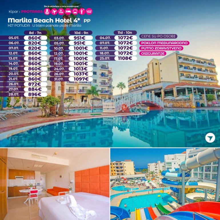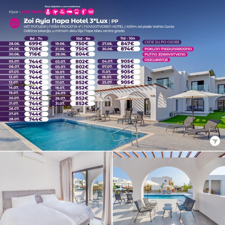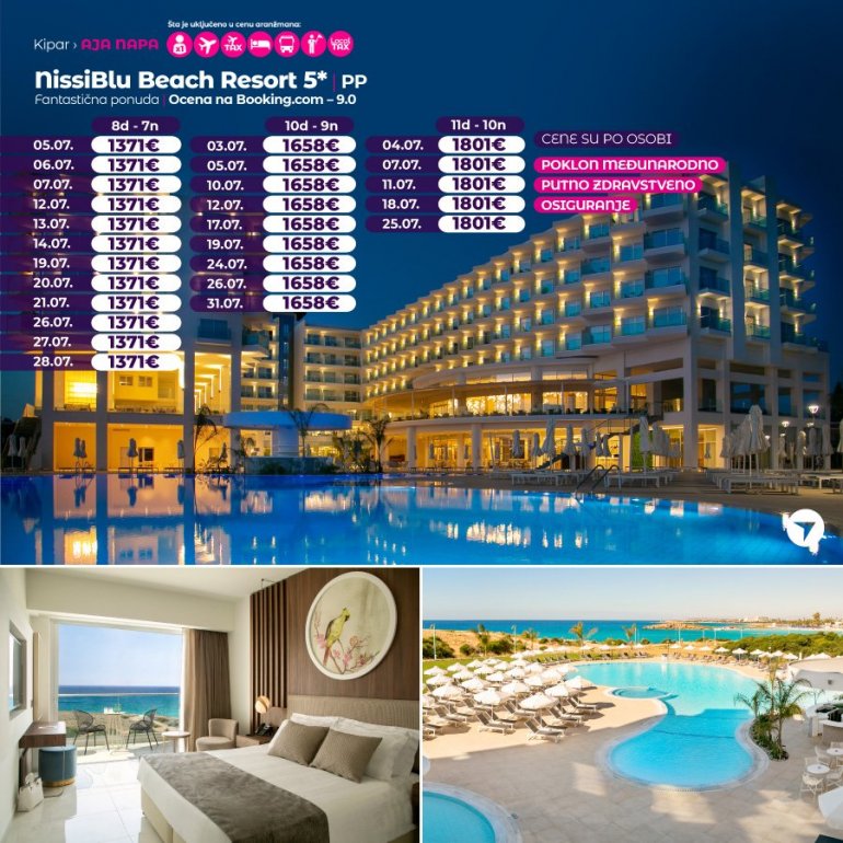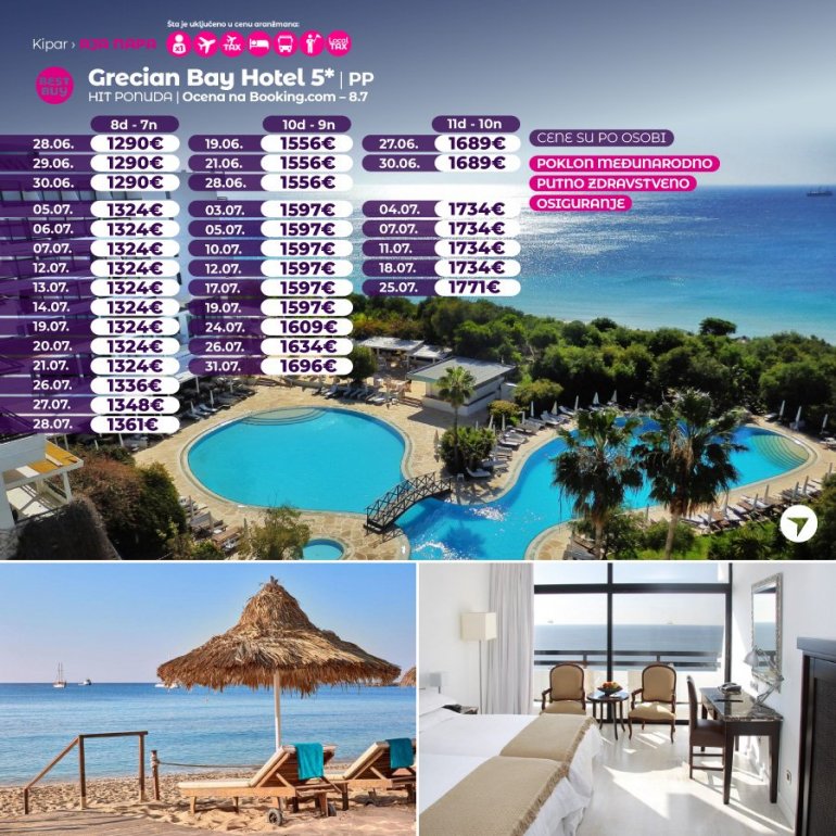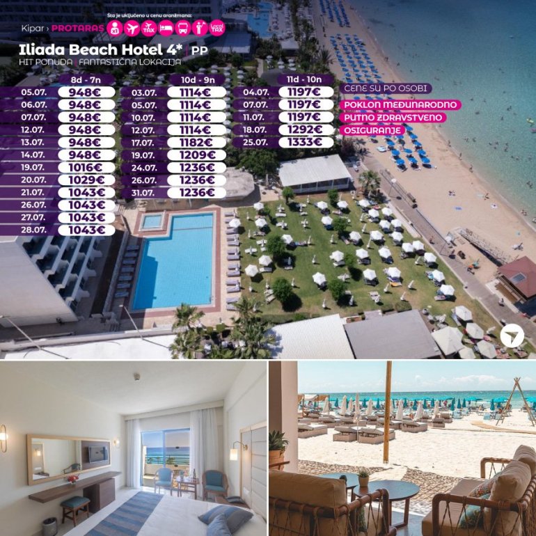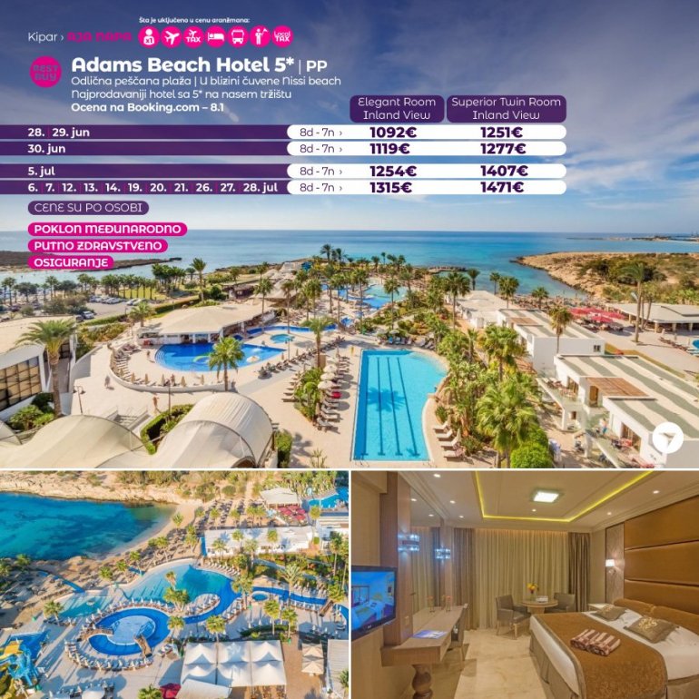 Дефинитивно нова омиљена летња дестинација наших туриста, свакако јесте рајско острво Кипар. Осетите чари Медитерана, фантастичних плажа, веома квалитетних хотела, изузетне гастрономске понуде, као и незаборавног ноћног провода.