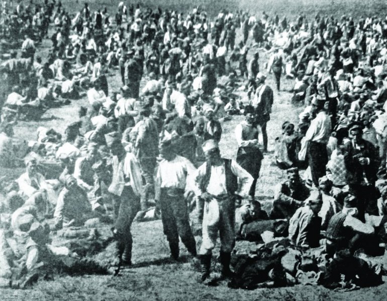 Српски интернирци из Срема на пољанама код Коморана у Угарској