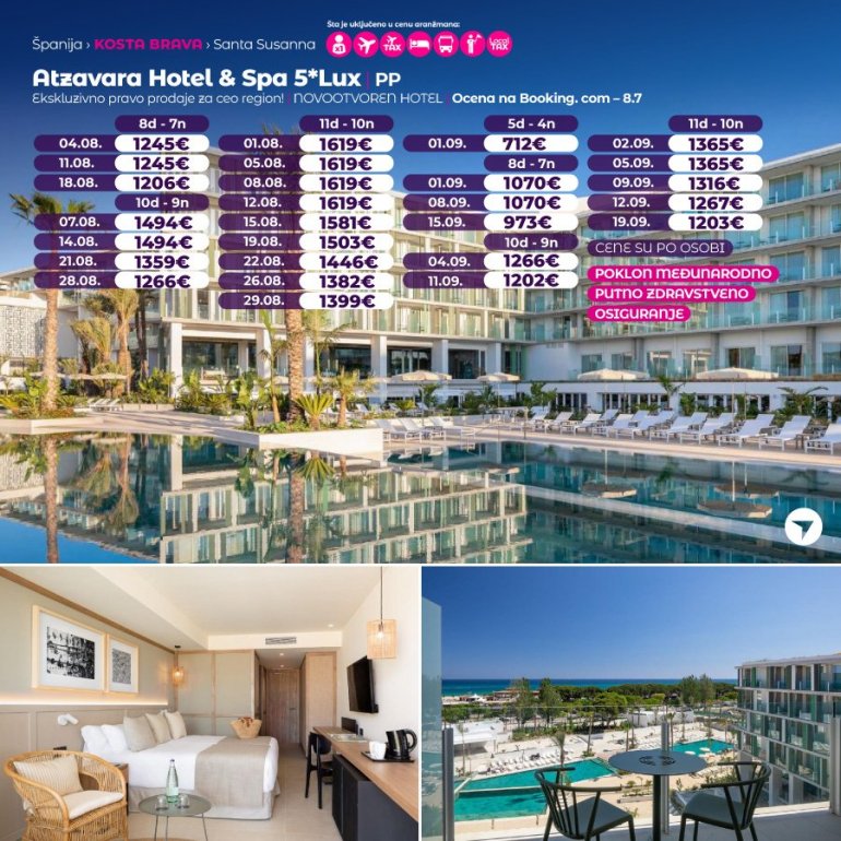 Atzavara је хотел са 5* смештен у центру Санта Сусане у регији Коста Брава, између Барселоне и Гироне, између планина и мора.Идеалан је за одмор са породицом. Удаљен је око 700 м од јавне градске плаже.