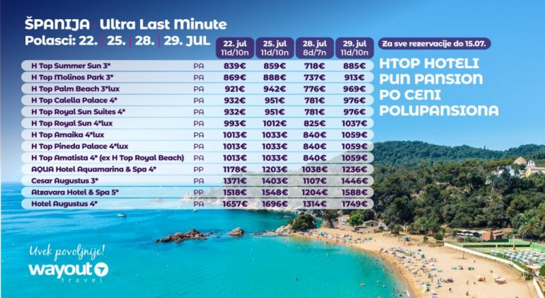 искористите погодности ultra last minute за поласке 14, 17, 18. и 19. јула, која важи до 11. јула.
