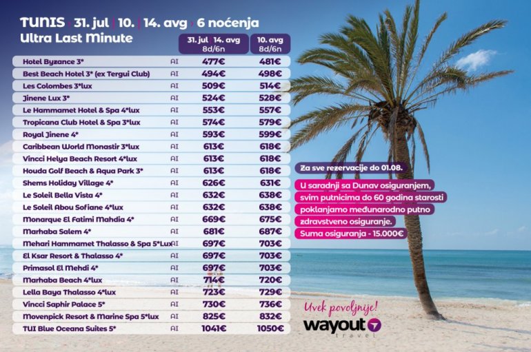 Kompletna ponuda je od sada dostupna i na jedan klik linktr.ee/wayout.travel, а iz naše raznovrsne ponude, za leto 2024. izdvajamo sledeće hotele.