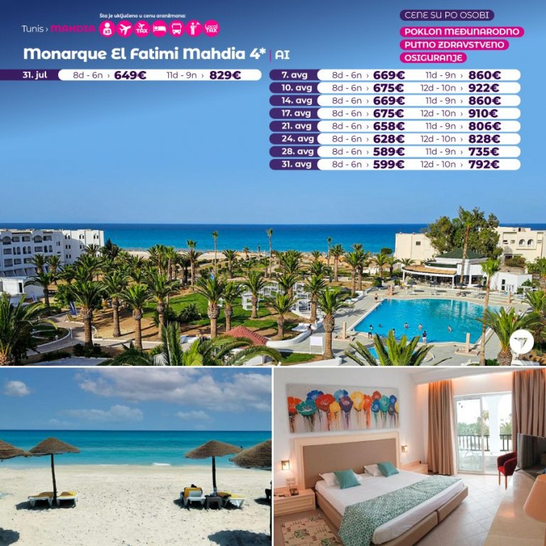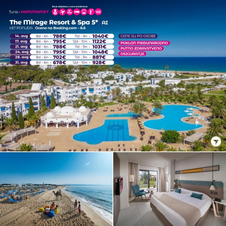 Kao organizator putovanja sa najvećim brojem putnika za Egipat, Kipar, UAE i ostale destinacije, što smo postigli zahvaljujući Vašoj neizmernoj podršci, nudimo Vam najbolju uslugu uz pristupačne cene (ako nađete jeftinije čak i na internet portalima vraćamo Vam razliku)