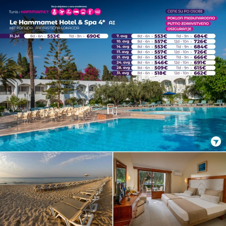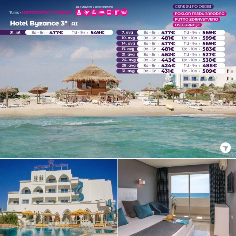 I to na samo oko 2 sata leta od Vas! Zaboravite na svakodnevne brige i prepustite se čarima TUNISA.