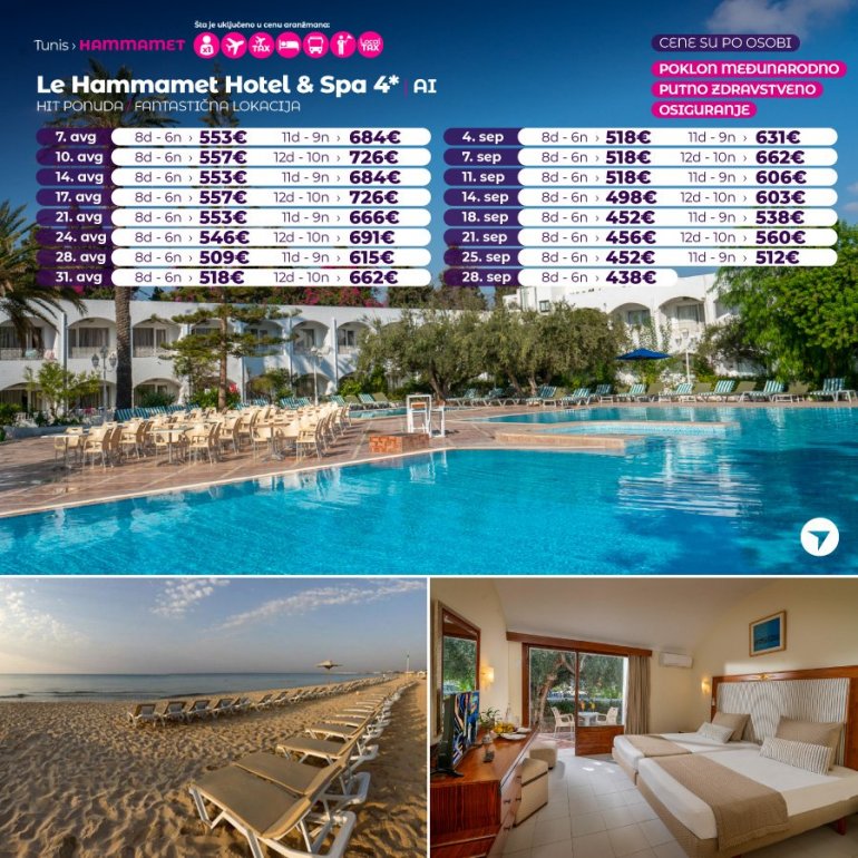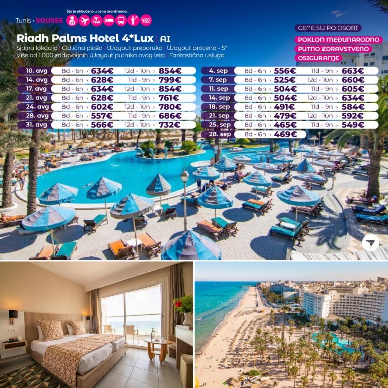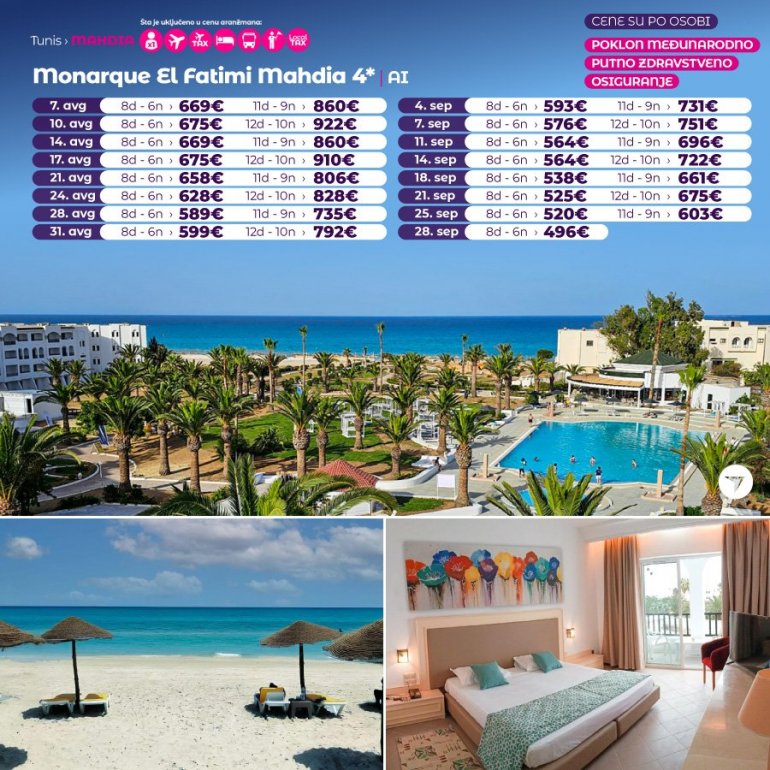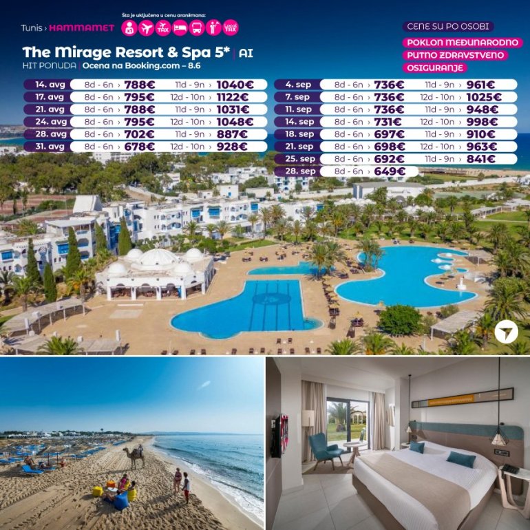 Као организатор путовања са највећим бројем путника за Египат, Кипар, УАЕ и остале дестинације, што смо постигли захваљујући Вашој неизмерној подршци, нудимо Вам најбољу услугу уз приступачне цене (ако нађете јефтиније, чак и на интернет порталима, враћамо Вам разлику).