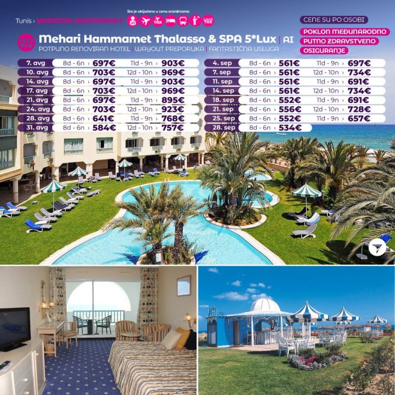 И то на само око 2 сата лета од Вас! Заборавите на свакодневне бриге и препустите се чарима ТУНИСА.