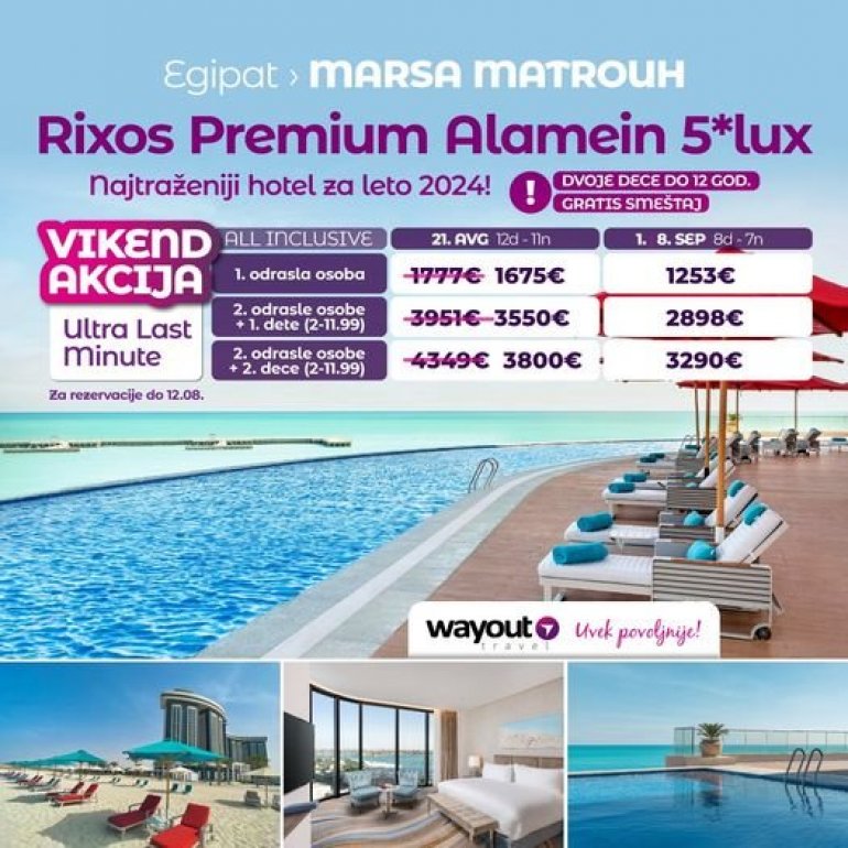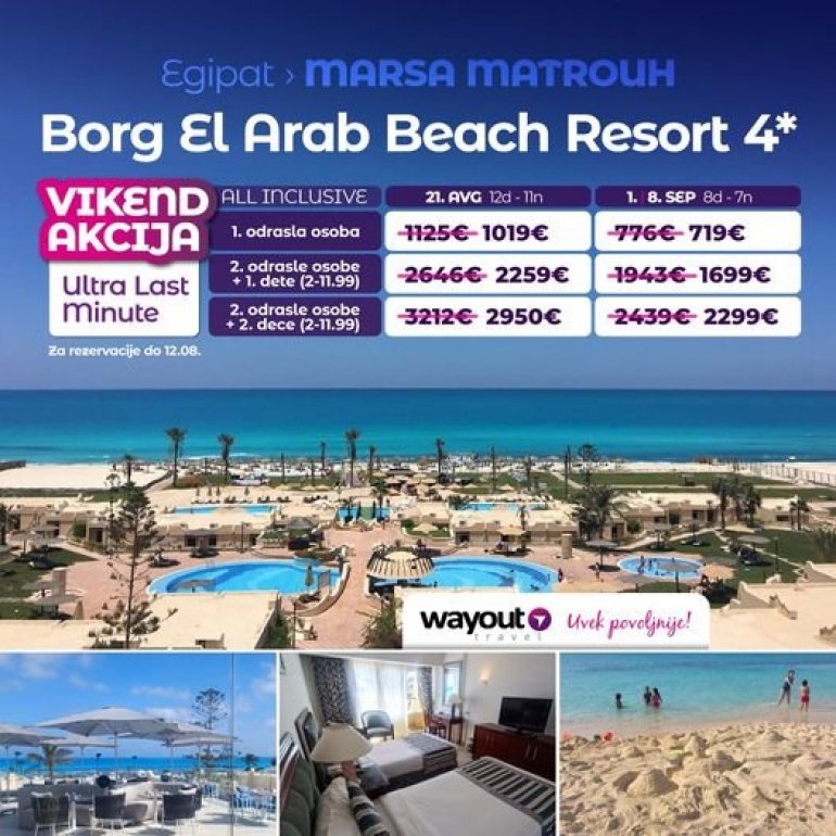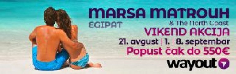 Добродошли у Marsa Matrouh - оазу на египатском Медитерану - која је веома популарна међу туристима из Италије, Чешке, Словачке, Немачке… Задовољство нам је да смо коначно, у сарадњи са Air Serbiom, успели да организујемо два директна лета до ове најлепше плаже на читавом Медитерану.