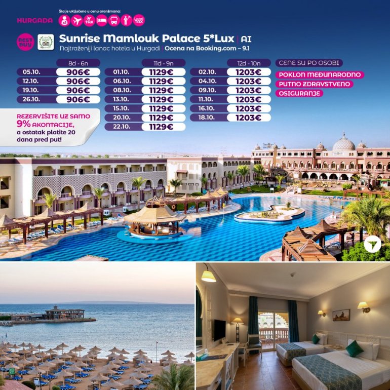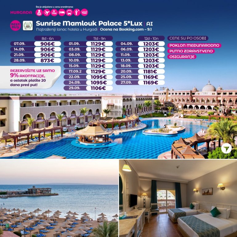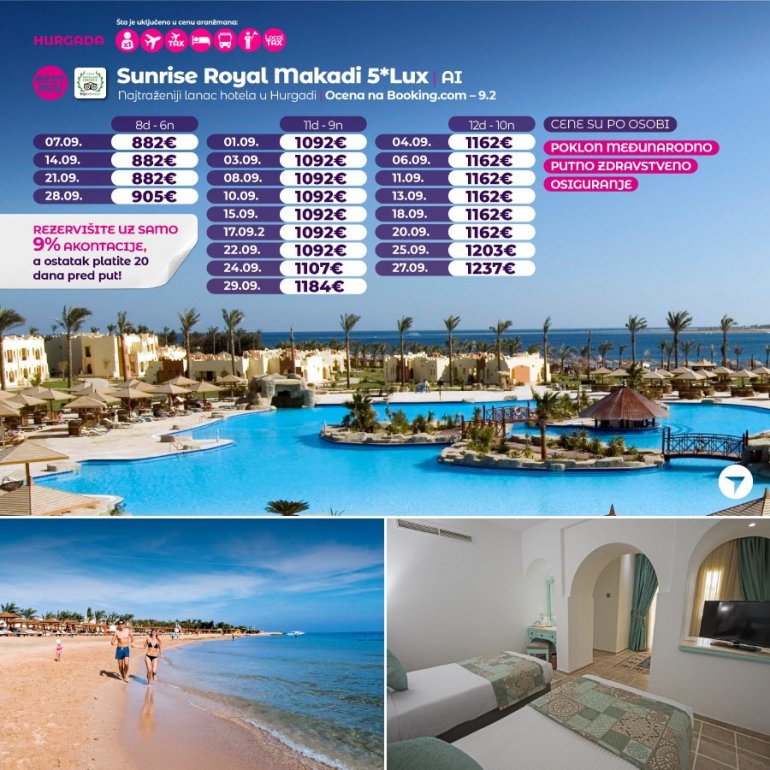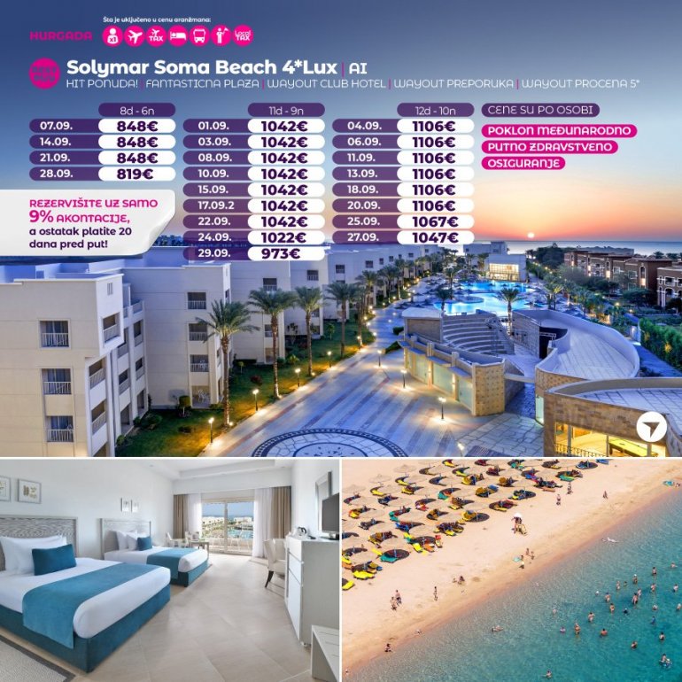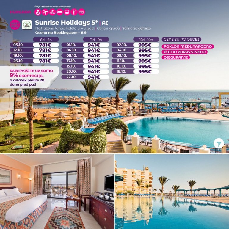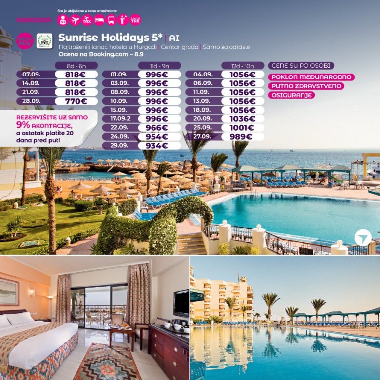 Као организатор путовања са највећим бројем путника за Египат, Кипар, УАЕ и остале дестинације, што смо постигли захваљујући Вашој неизмерној подршци, нудимо Вам најбољу услугу уз приступачне цене (ако нађете јефтиније чак и на интернет порталима враћамо Вам разлику)