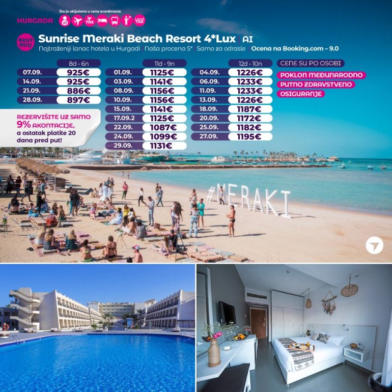 Хотел Сунрисе Мераки Беацх Ресорт налази се у близини старог центра Хургаде, на мање од 20 минута вожње од аеродрома и новог центра.