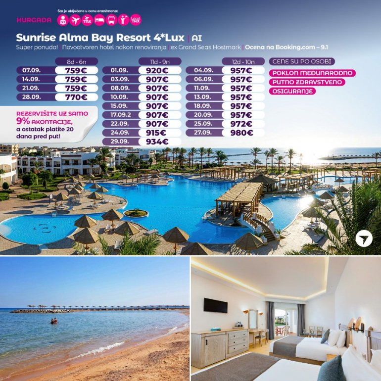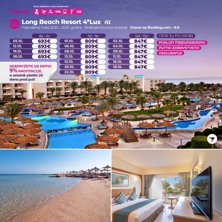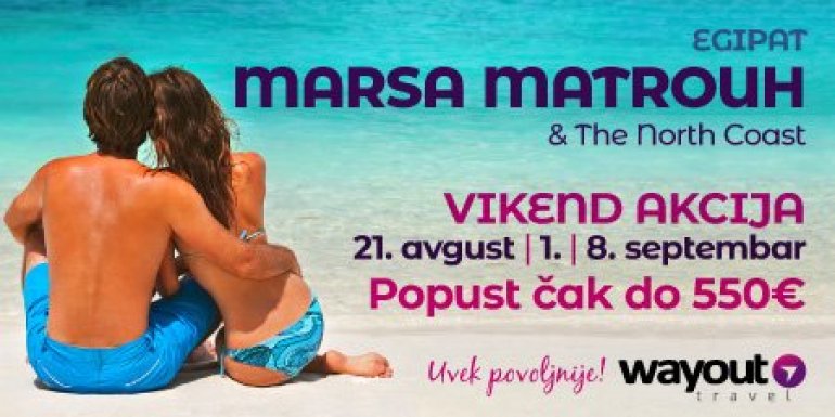 За ХИТ дестинацију овог лета Марса Матроух&Нортх Цоаст не пропустите викенд акцију за поласке 21. августа и 01 & 08 септембар са попустом и до 550 еур. Попуст важи до 12. августа!