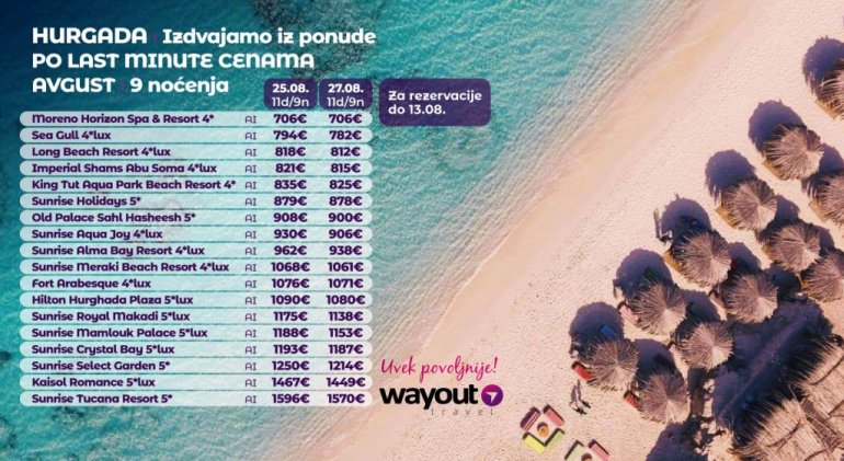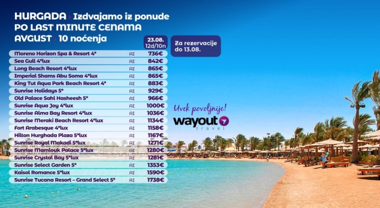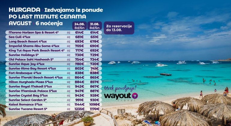 Wаyоут је још пре 18 година, као своју прву дестинацију, отворио Хургаду. У протеклих 18 година, а захваљујући својим путницима, постали смо тур оператер бр.1 по броју путника за Хургаду.