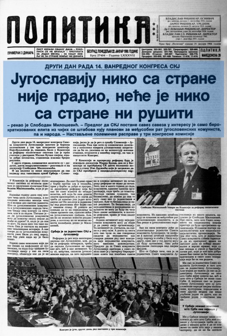 МИЛОШЕВИЋ је веровао да ће Југославију спасти српска већина у СКЈ, па тиме и међу делегатима 14. конгреса СКЈ.