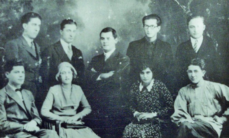 Милован Ђилас, седи последњи са десне стране, са групом младих писаца