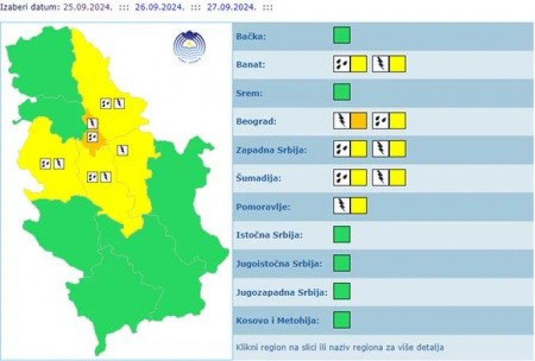 Београдски регион једини је у Србији где је данас упаљен и наранџасти метеоалрмом због две појаве - пљуска и грмљавине!