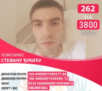 Да бисмо помогли овом момку у најважнијој бици у животу, потребно је да до краја месеца пошаљемо око 10.000 хуманитарних СМС порука са садржајем 262 на број 3800 или уплатом било ког износа на наменске рачуне, који се могу видети на слици.