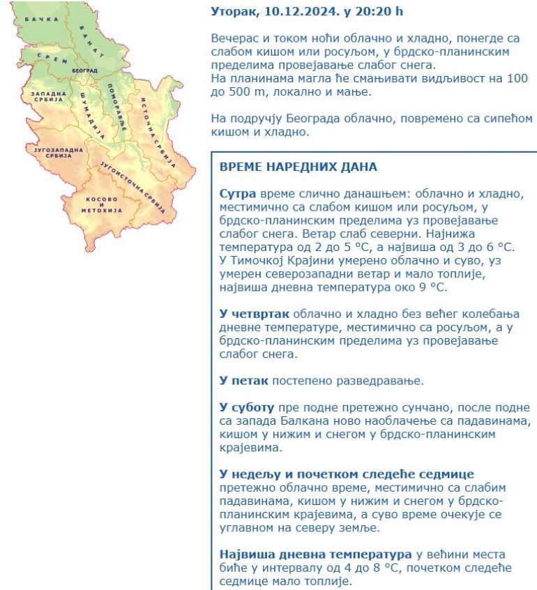 РЕПУБЛИЧКИ хидрометеоролошки завод огласио се на свом званичном сајту најновијим саопштењем.
