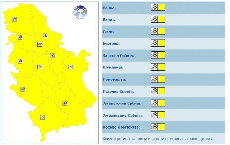 Како је РХМЗ упозорио, у Поморављу, југозападној и југоисточној Србији метеоаларм жуте боје биће упаљен због снега и леда, магле и врло ниских температура.