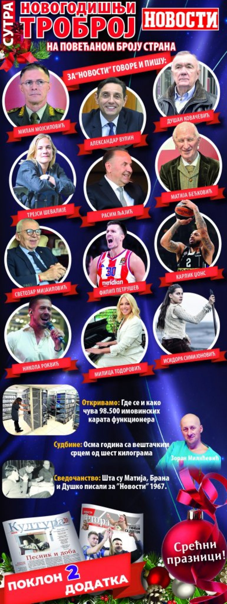ЕКСКЛУЗИВНИ ИНТЕРВЈУИ И РЕПОРТАЖЕ: Новогодишњи троброј "Вечерњих новости" у уторак, 31. децембра