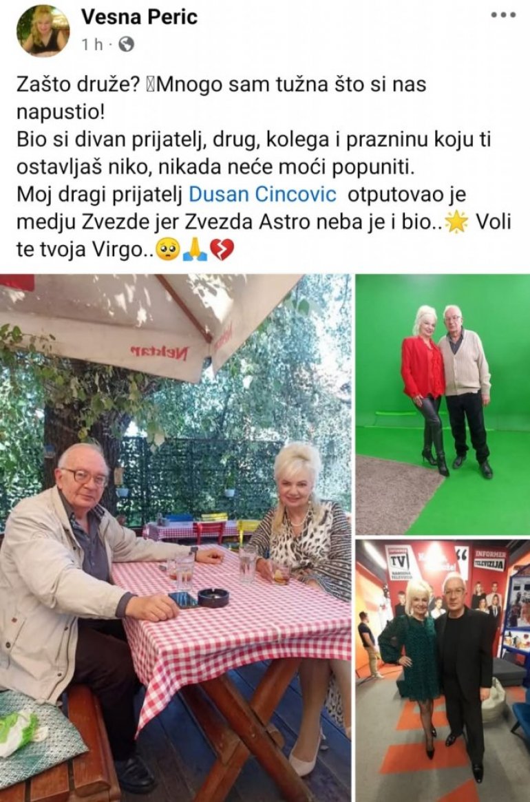 Од астролога Душана Цинцовића на друштвеним мрежама опростила се нумеролог Весна Вирго.