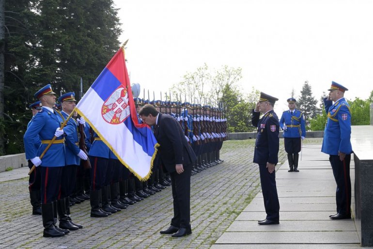 ИЗАСЛАНИК председника Републике и врховног команданта Војске Србије Александра Вучића министар одбране Братислав Гашић, у пратњи начелника Генералштаба Војске Србије генерала Милана Мојсиловића и команданта Гарде бригадног генерала Жељка Фурунџића, положио је данас, поводом Дана Војске Србије - 23. априла, венац на Споменик незнаном јунаку на Авали.