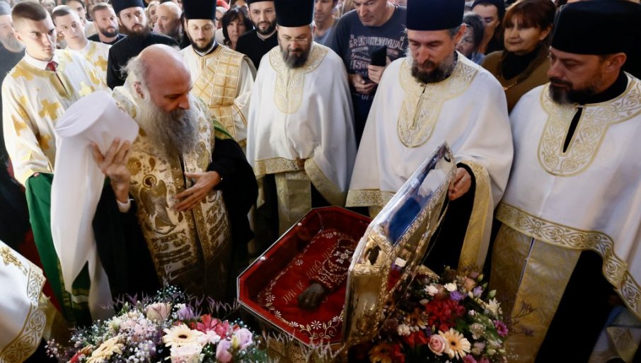 ИСПРЕД ВЕЗНЕСЕЊСКЕ ЦРКВЕ ДОЧЕКАНА РУКА СВЕТОГ САВЕ: Сутра на челу Спасовданске литије (ФОТО)