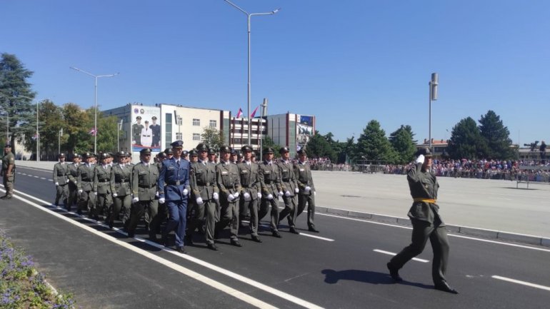 - Поносан сам на ваше знање, на вашу љубав према српској отаџбини. Ми ничије да дирамо нећемо и то вам гарантујем и као врховни командант наших снага, али оно што је наше, оно што је Србија нећемо дати никоме. Хвала вам за сву љубав, посвећеност, за све оно што дајете Србији, то нема цене. Онолико колико ми можемо да вам олакшамо живот, да помогнемо да имате већа примања, најбољу опрему... Ваши ближњи ће моћи да вас виде већ за 45 дана када ћемо показати, после оних који су славили прогон и смрт српског народа, ми ћемо да славимо само наше јединство, а не несрећу неких других. Показаћемо колико смо боље опремљени, спремнији данас да своју отаџбину сачувамо, него што смо то били пре 26 година.