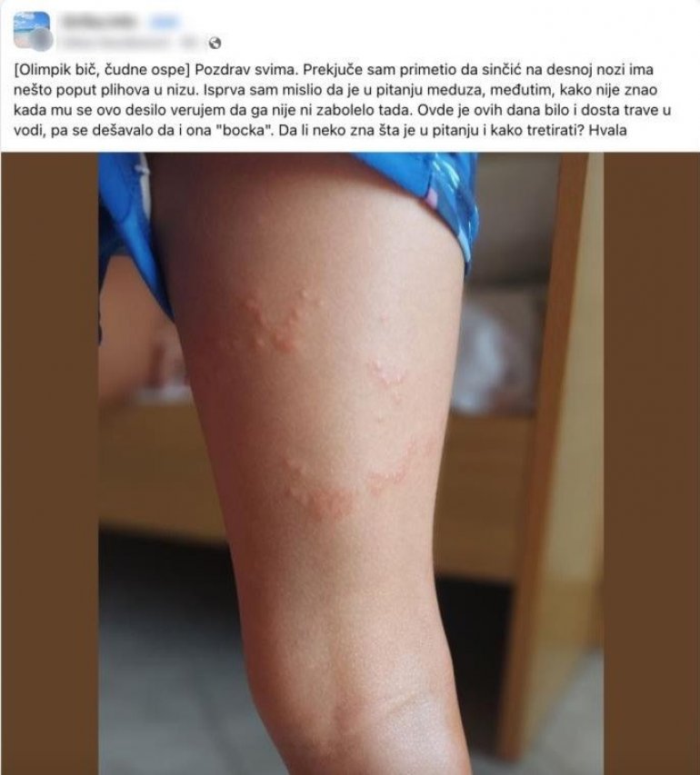- Поздрав свима. Прекјуче сам приметио да синчић на десној нози има нешто попут плихова у низу. Испрва сам мислио да је у питању медуза, међутим, како није знао како се ово десило, верујем да га није ни заболело тада - написао је забринут отац.