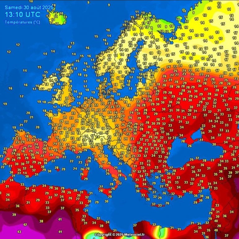 Температуре у 14 часова кретале су се од 18 на западу до 35 на југоистоку Србије, у Београду је 32°Ц. У 15 ћасова температуре се крећу од 16 степени на западу Србије до 36 на југоистоку Србије, колико је у Нишу. Температура у Београду опала је 26, на Копаонику на 13 степени.