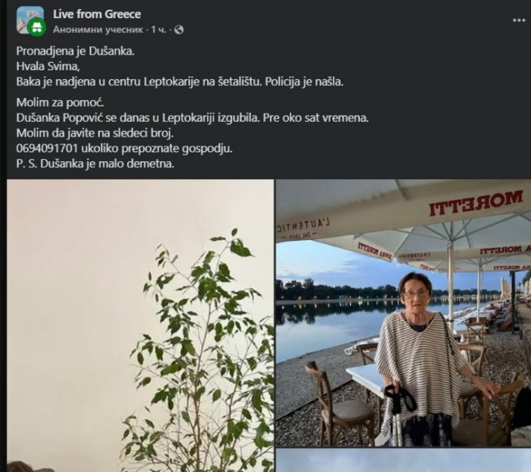 Ипак, како је објављено на Фејсбук групи "Ливе фром Грееце", Душанку је пронашла полиција.