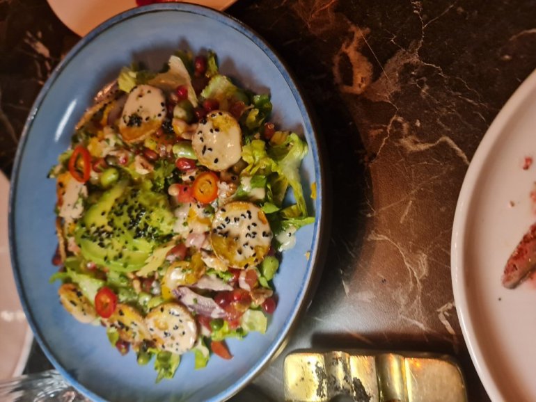 Оријентална кухиња Анкаре негује богатство боја и мириса и у најједноставнијим јелима. Посебно место заузимају свеже салате које спајају сезонско поврће, зрнасте плодове и кремасте сосове од сусама и лимуна. Управо таква је и освежавајућа комбинација авокада, батата, нара и благо пикантних зачина – спој свежине и топлине, карактеристичан за Анкару и њене модерне гастрономске интерпретације.