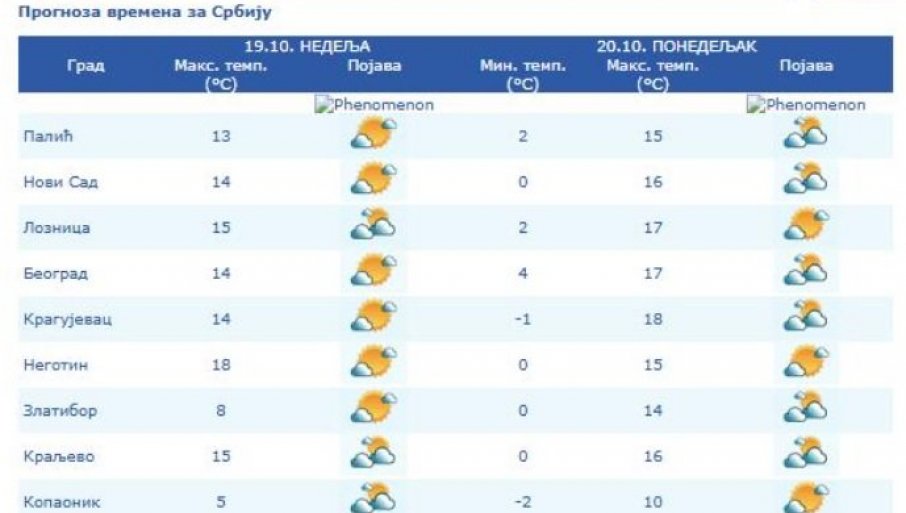 Најнижа температура биће од један степен до осам, а највиша дневна од 13 до 18 степени.