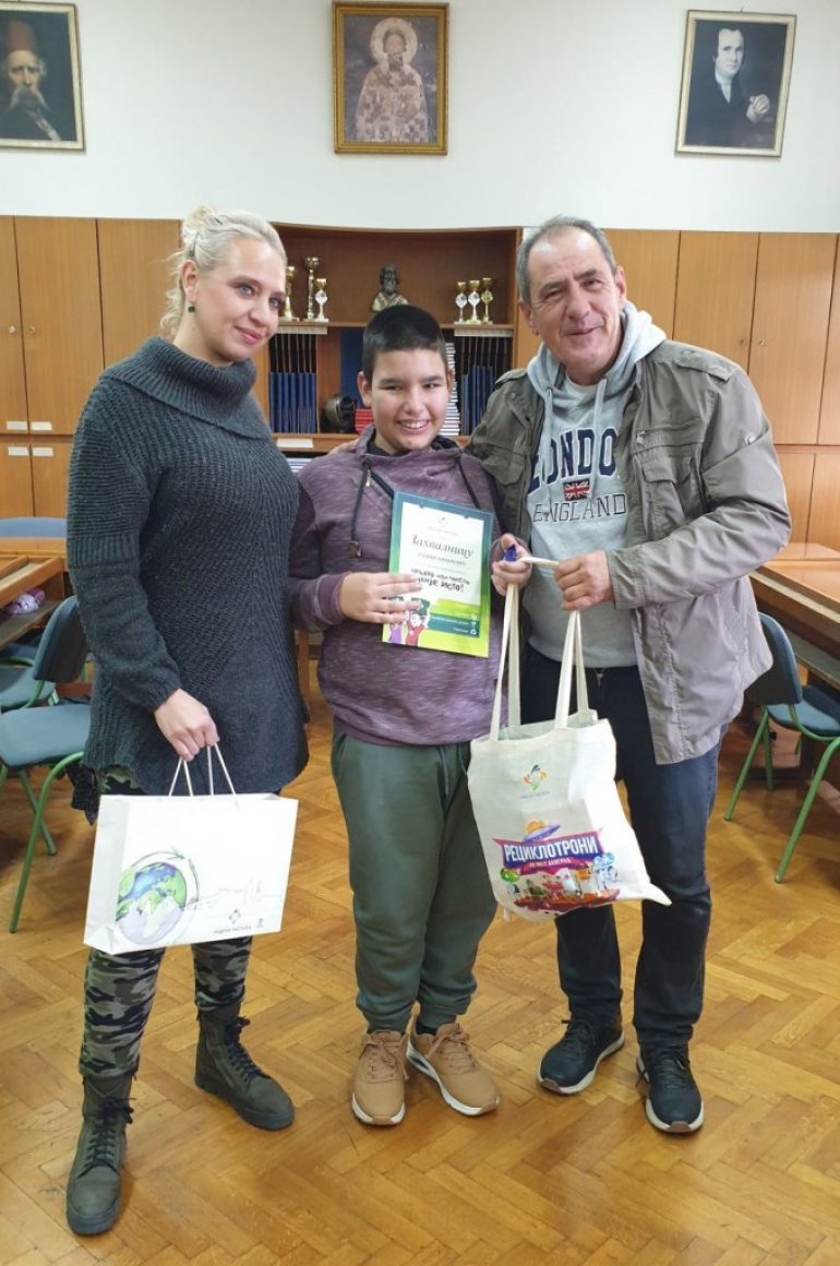 Стефану и Дамјану, ауторима најуспелијих радова из ове школе, запослени Одељења за еколошку едукацију и информисање „Градске чистоће“ су доделили заслужене награде. Поред тога, запослени „Градске чистоће“ су посебно уживали у дружењу са својим домаћинима, школарцима и њиховим посвећеним и креативним наставницима.
