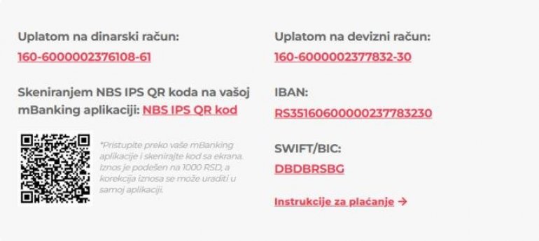 *Приступите преко ваше мБанкинг апликације и скенирајте код са екрана. Износ је подешен на 1000 РСД, а корекција износа се може урадити у самој апликацији.