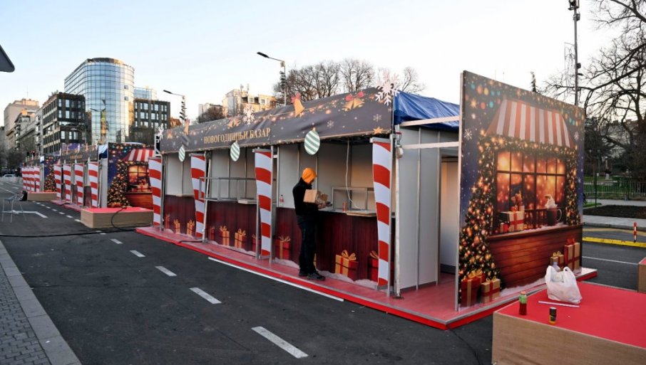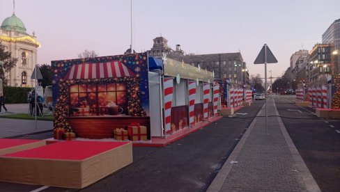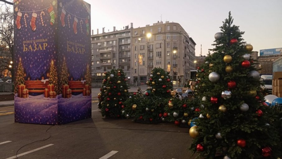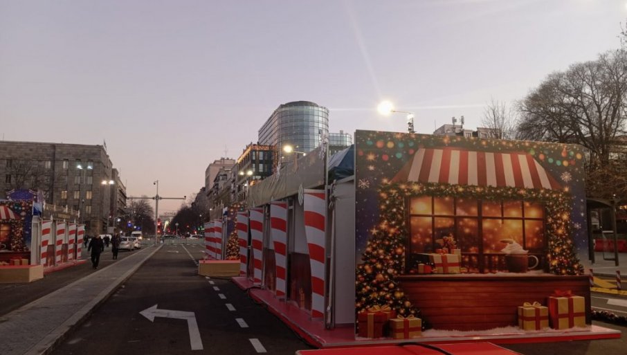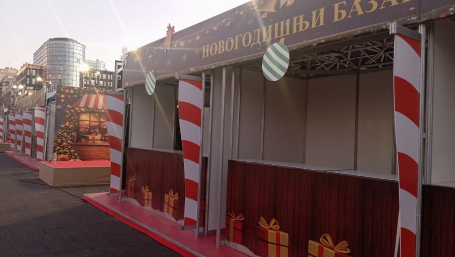 ШАТОРЕ ИСПРЕД НАРОДНЕ СКУПШТИНЕ ЗАМЕНИЛИ УКРАСНИ ШТАНДОВИ И ЈЕЛКЕ: Постављено Божићно село, како је најавио председник Вучић