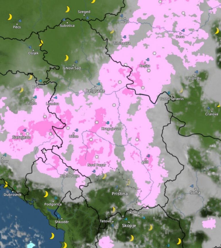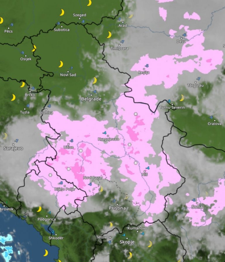 Очекује се додатно захлађење. Најниже температуре од чак -8 степени очекују се у Урошевцу и Босилеграду.