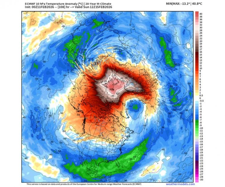 Аномалије притиска и температуре у стратосфери указују на догађај загревања који обично има “обарајући” утицај на нижу атмосферу, али са одређеним закашњењем.