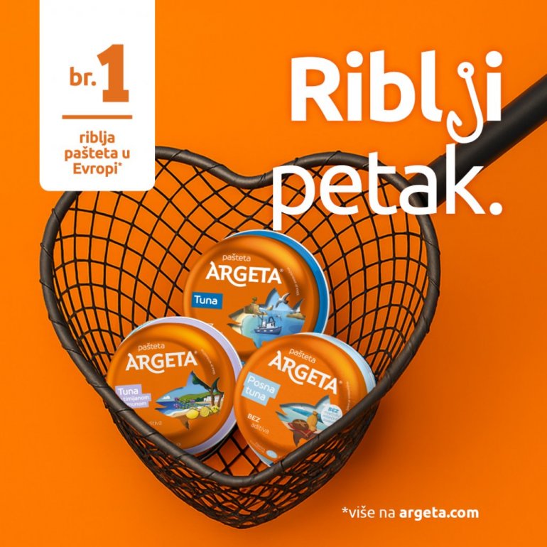 Петак увек доноси посебну врсту задовољства, јер најављује дане одмора. А од сада последњи радни дан у недељи постаје још бољи, јер Аргета представља „Рибљи петак“, концепт који подсећа све нас да уведемо квалитетне производе и добре навике у наш живот. То значи да сваког петка уживамо у врхунском укусу, кроз Аргета рибље паштете као практичан, квалитетан и лаган оброк.