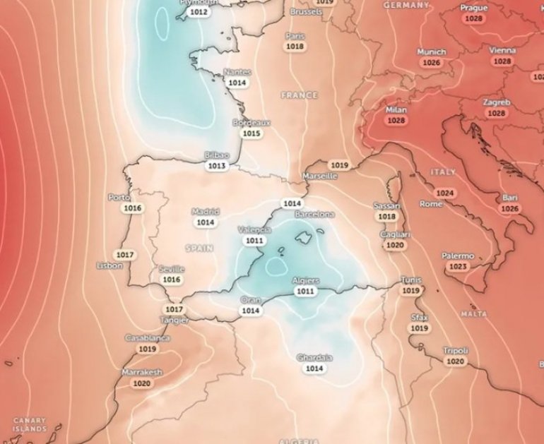 ЕВРОПА и Србија ових дана су готово у потпуности под утицајем антицклона и снажног поља високог ваздушног притиска, а над западним Медитераном развијо се систем који ће донети промену југу Србије. Активни циклон формиран између Пиринејског полуострва и севера Африке покреће снажну ротацију ветрова и повлачи топле ваздушне масе из Сахаре ка Медитерану, нашем подручју и централној Европи.