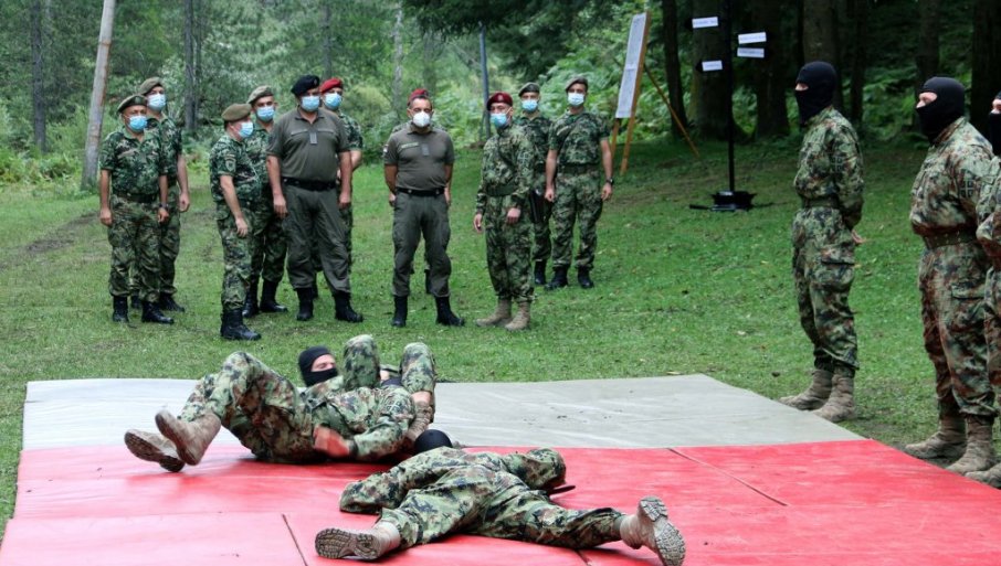 - На првој радној тачки приказали смо обуку у борењу и обуку у гађању ножем. На другој радној тачки показали смо тактичку обуку специјалних дејстава и рад извиђачке групе, а на трећој тачки приказали смо садржаје самосталне исхране у природи - рекао је мајор Свилар, додавши да се за време обуке у посебним условима лети припадници извиђачке чете припремају за извршавање задатака у отежаним теренским условима и условима отежаног снабдевања храном и водом.