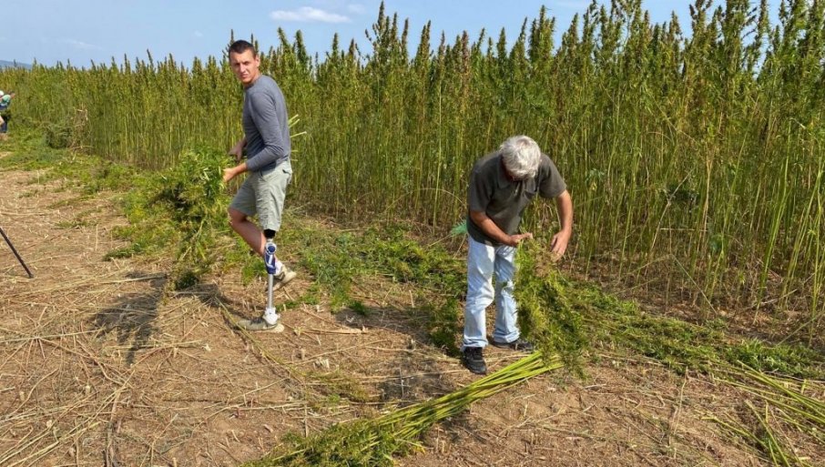 У АТАРУ нишког села Чокот на два и по хектара почела је жетва индустријске конопље, коју узгајају Немања Тадић (25) и Страхиња Станковић (26).