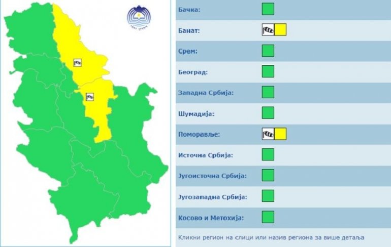 Такође, упозорава се и на јак ветар на подручју Браничевског округа и Баната.