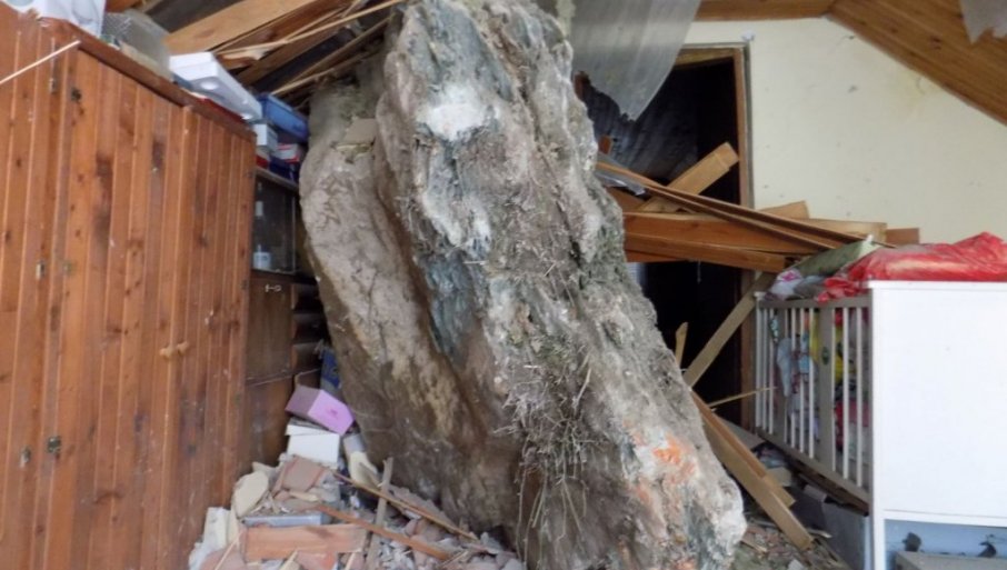 ОГРОМНА стена, тешка више од пет тона, одронила се са врха брда изнад куће породице Алексић у Грделици и завршила у њиховом дому!