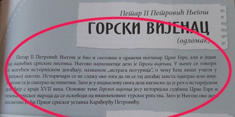 ЊЕГОШЕВЕ ЗАМЕРКЕ ЕВРОПИ НЕСТАЛЕ ИЗ ЧИТАНКЕ: У уџбенику за осми разред избачене кључне поруке капиталних књижевних дела