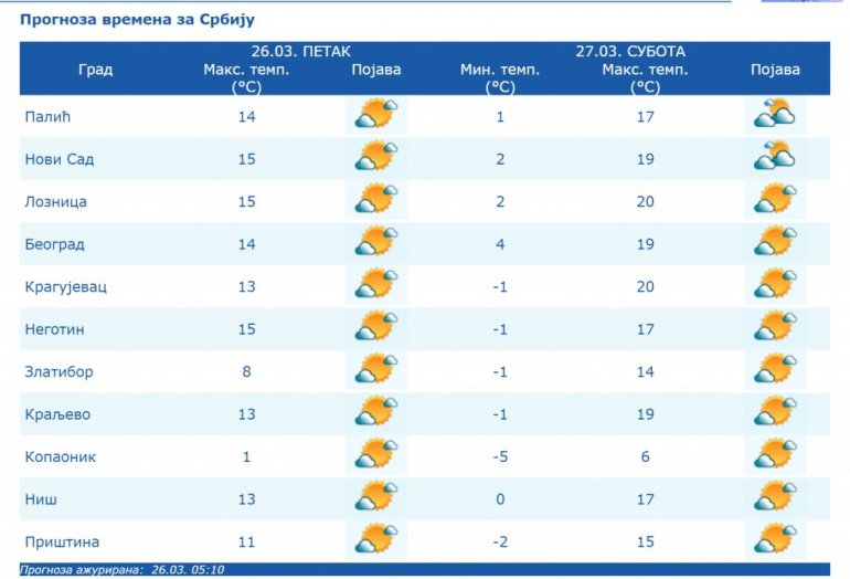 ДАНАС ЈОШ ТОПЛИЈЕ ВРЕМЕ: Након јутарњег мраза температуре и до 15 степени, а погледајте какво нас време очекује наредних седам дана