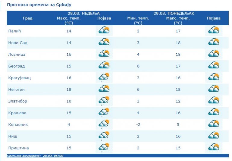 Изгледи времена за наредне дане