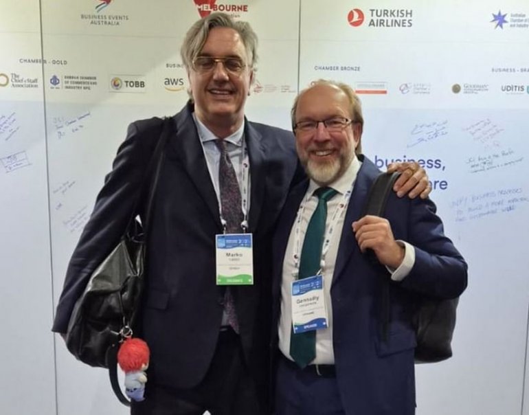 Са председником Привредне коморе Летоније, Аигарсом Ростовским Чадеж је у Мелбурну потписао Споразум о сарадњи, а одржао је билатералне састанке са колегама из Украјине, Северне Македоније и других држава.