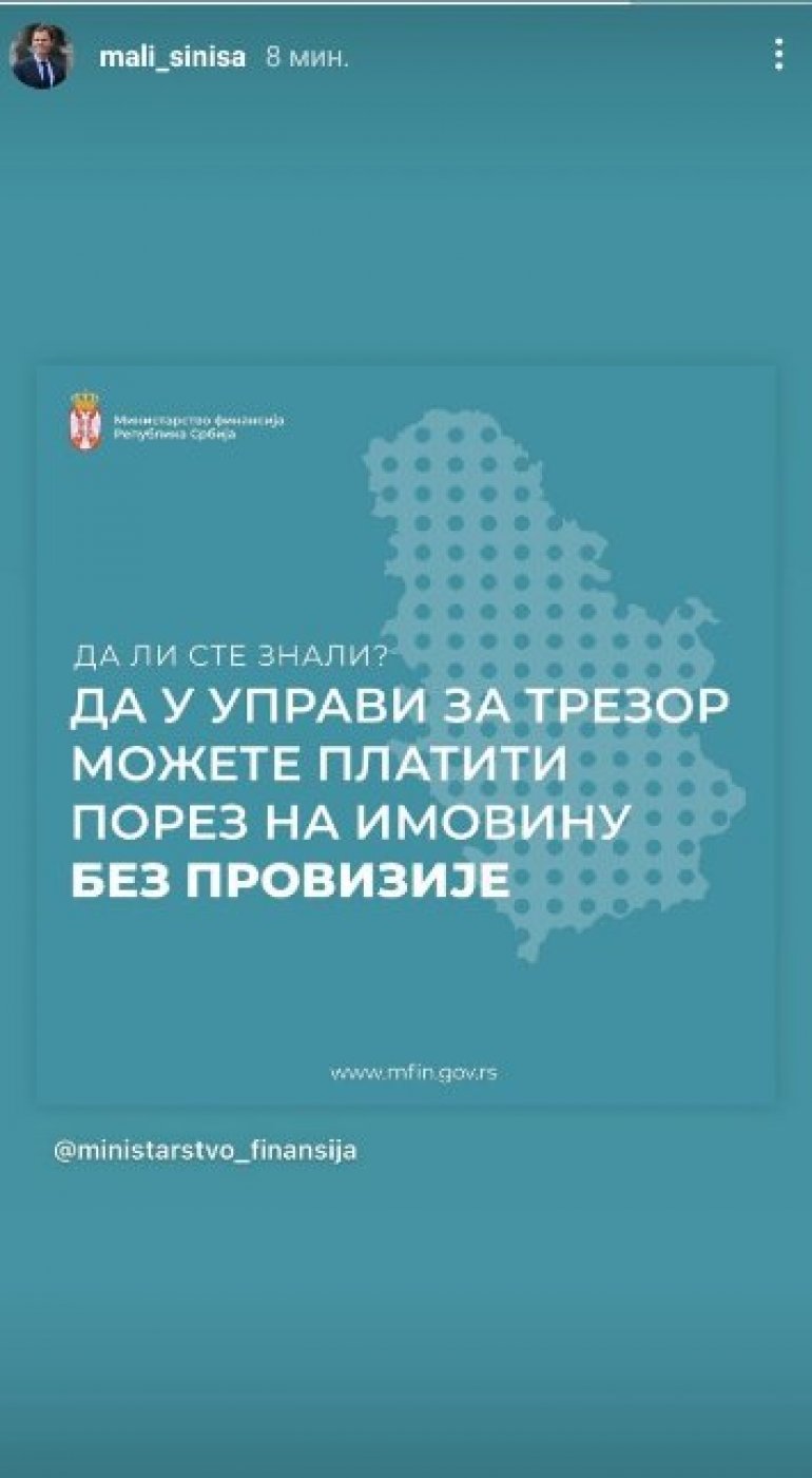 МИНИСТАР МАЛИ ПОДСЕЋА: У Управи за трезор плаћање пореза на имовину без провизије