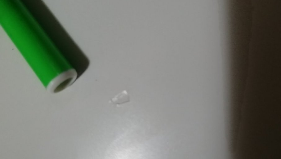 Према речима нашег саговорника, радни сто са додатним делом које је заједно платио 11.000 динара донео је у стан на Миријево и сам га склопио. Дечји радни сточић је изгледао потпуно нормално, без икаквих мана. Површина је била савршено глатка. Када је девојчица, међутим, радосно села да га испроба и неко време писала и цртала у својој свесци, нису ни слутили да је то довољно да се на новом столу појави рупа.